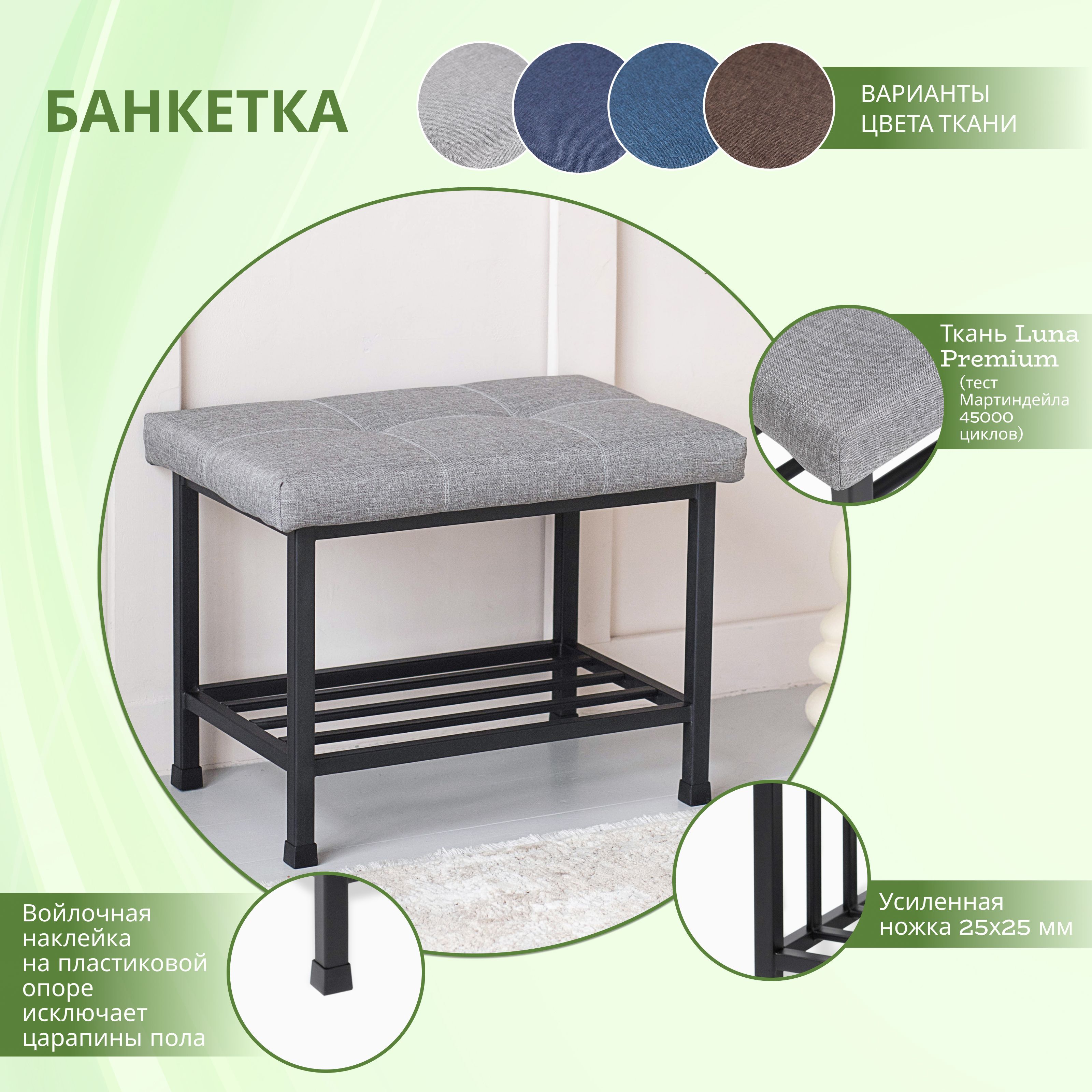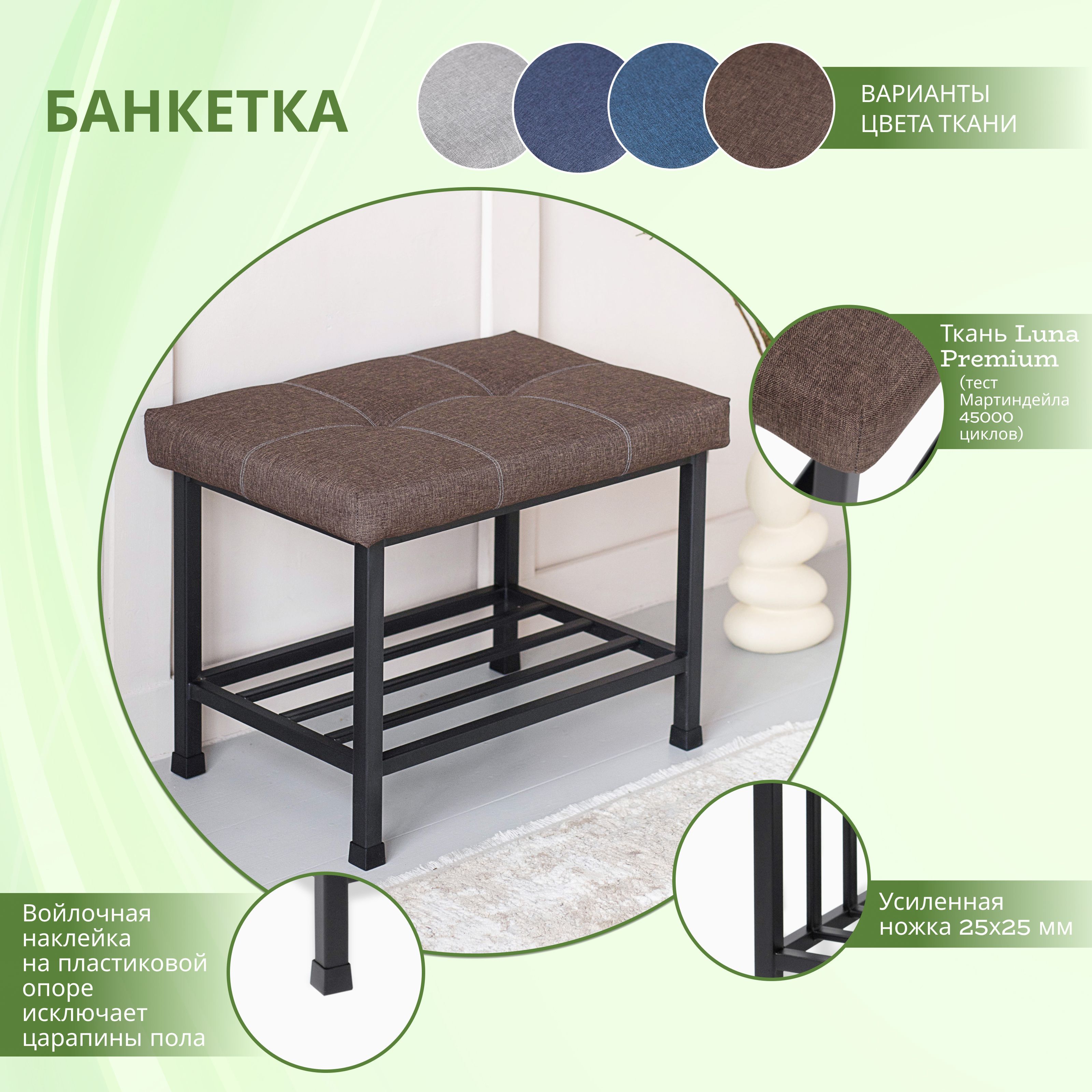 Банкетка - это не только функциональный предмет мебели, но и стильный элемент декора. Она идеально подойдет для прихожей, где можно хранить обувь и другие вещи. Банкетка изготовлена из качественных материалов, что обеспечивает ее долговечность.Кроме того, она имеет удобную форму и размеры, которые позволяют разместить ее в любом помещении. Обивка выполнена из текстиля, который легко чистится и не теряет свой внешний вид со временем.Банкетка имеет отделение для хранения обуви, что очень удобно для тех, кто любит порядок и комфорт. Она также не имеет спинки и подлокотников, что делает ее еще более компактной и удобной.Высота и глубина банкетки составляют 45 см и 40 см соответственно, а ширина - 60 см. Весит 8 кг, что позволяет легко перемещать ее по комнате.Если вы ищете стильную и функциональную мебель для своей прихожей, то банкетка - идеальный выбор. Она не только украсит ваш интерьер, но и поможет организовать пространство.